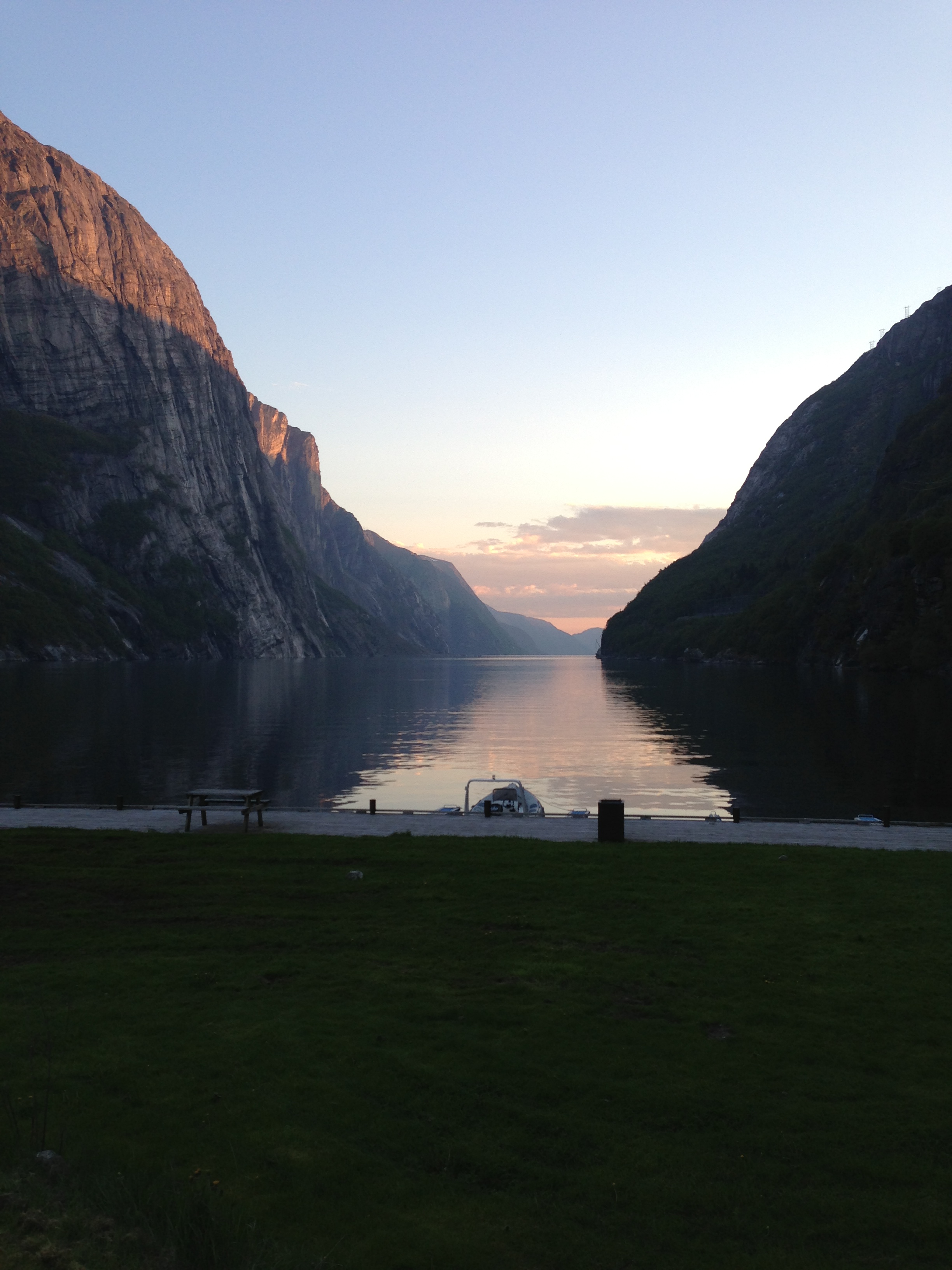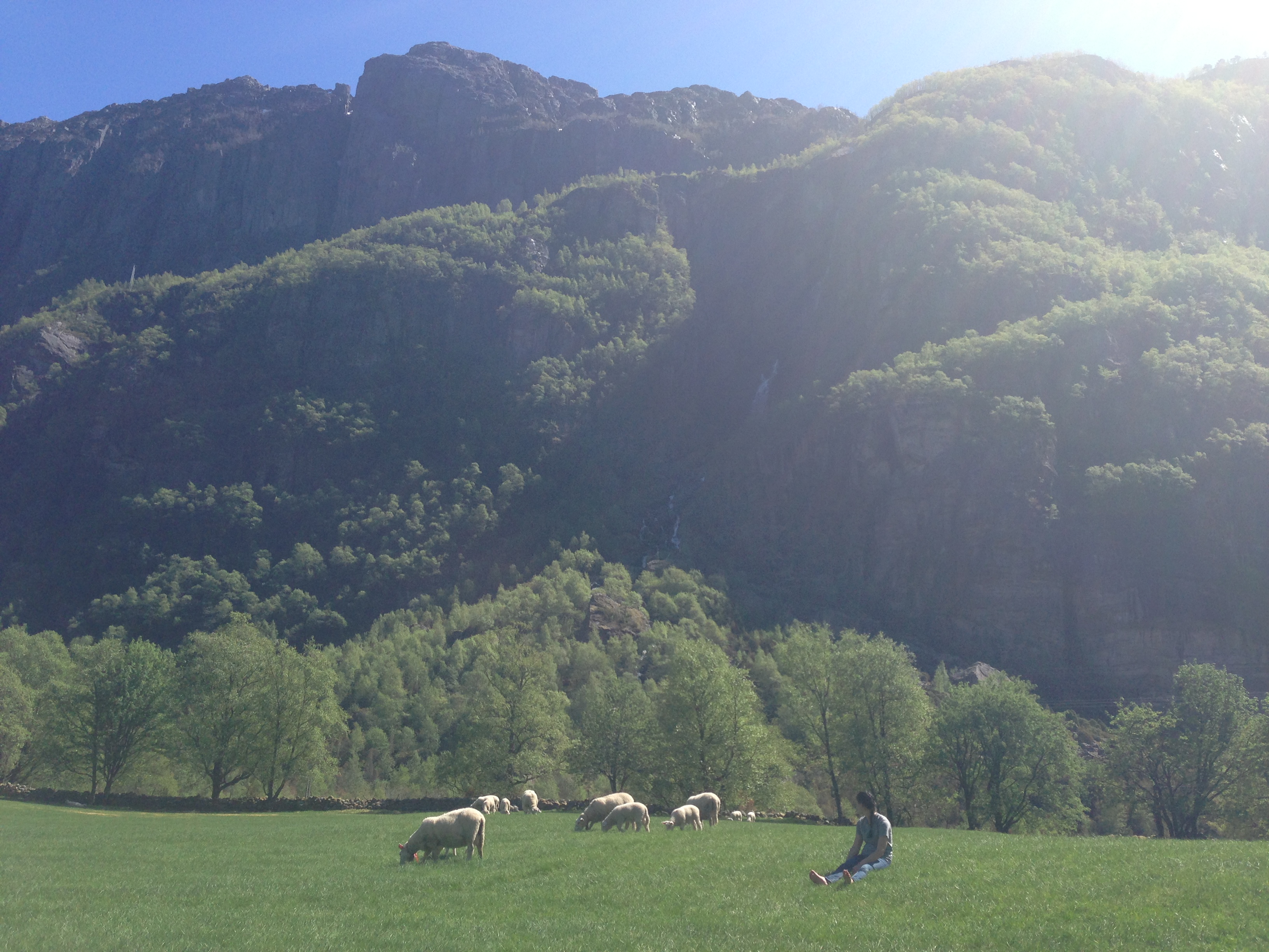Once everything was settled, we ventured out into the tiny village. There was a single road (the same bazillion-hairpin-turn one that led down into the valley) that followed our “bubbling brook” down to Lysefjord. We became very familiar with this scenic road and the few houses and many sheep that peppered it. Every day for 6 days we would walk and talk up and down this road and there were 4 really great reasons for doing so.