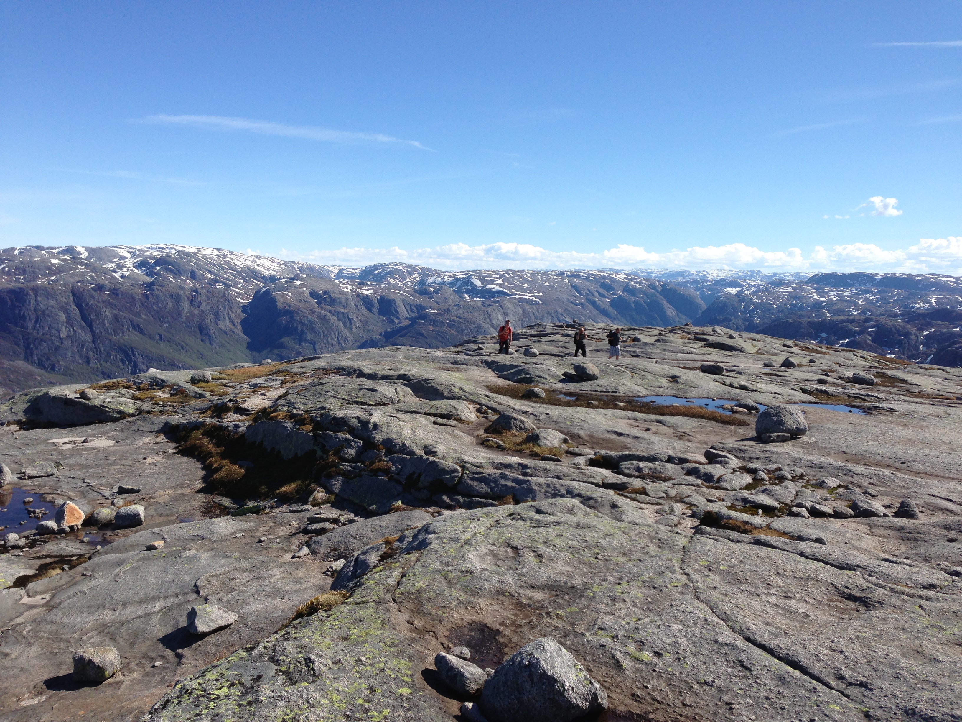 We walked down to the SBK building and loaded into the van that would take us up FV500 (bazillion hairpin turn road) to the start of the hike (you already know this was scary). There were two vans that went up with about 15-20 people in total, almost all with the same intent- hike to Kjerag and jump. The only exception to that was me. I was the only person from that caravan who would hike back down, including the hiking guide- he was a BASE jumper, too.