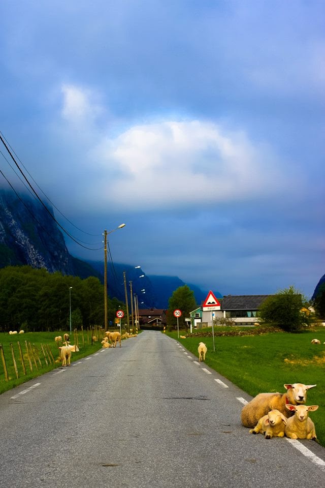 It was as if the heavens had opened when the road straightened out towards Lysefjord (the flooded glacial valley of Lysebotn with 3000ft towering cliffs on each side). My senses quickly became overloaded. The view was a complete fairytale. In the sky remained that mystical haze against a brilliant cool blue, the cliffs disappearing some unrealized distance into the fog. The grass was as green as Elphaba, and the sheep were… not as white as snow, but not to worry, I would take all the sheep in the world, any color. Nothing could change the feeling that I had at that moment. The quaint village town with no grocery store (and sheep for days) was rapidly nestling into one of the most barren corners of my heart. The spot carved out by what the Germans call “fernweh” which means homesick for a place you’ve never been to. This place was hitting that spot.